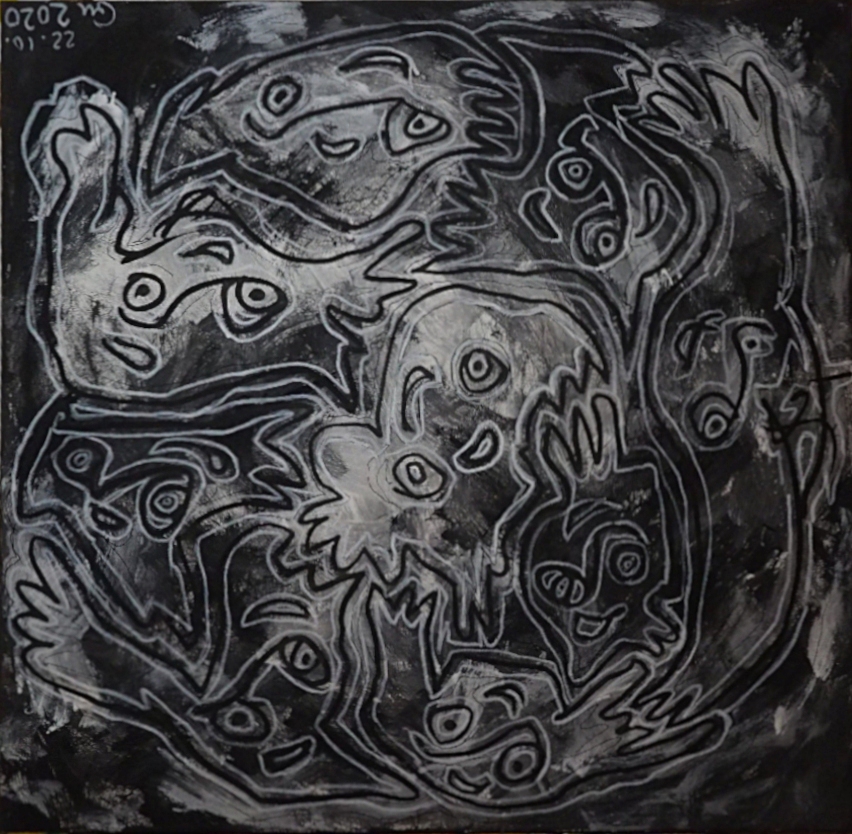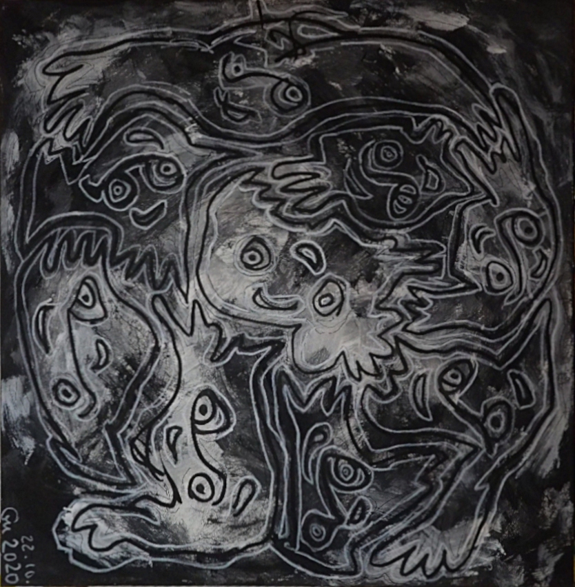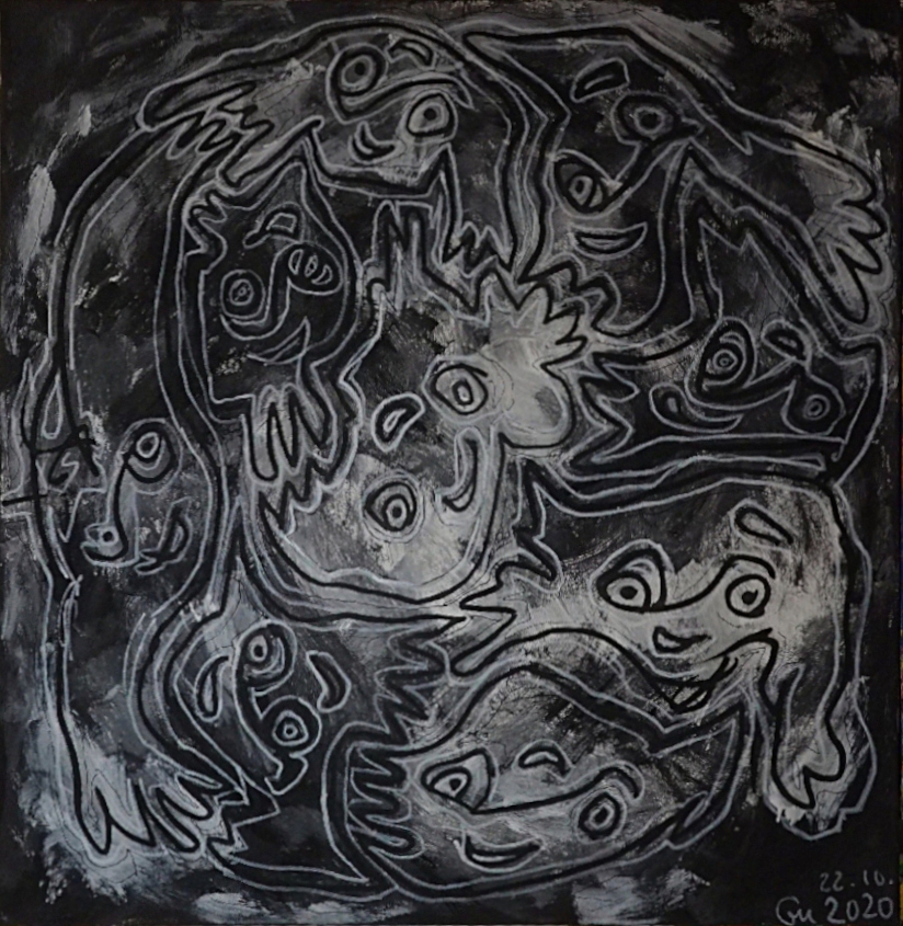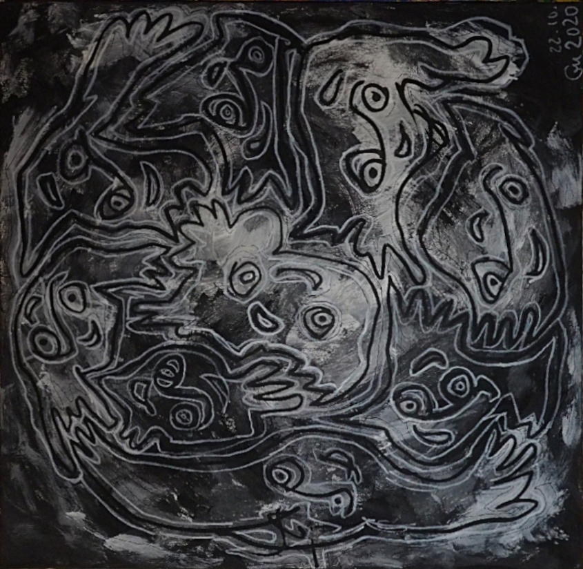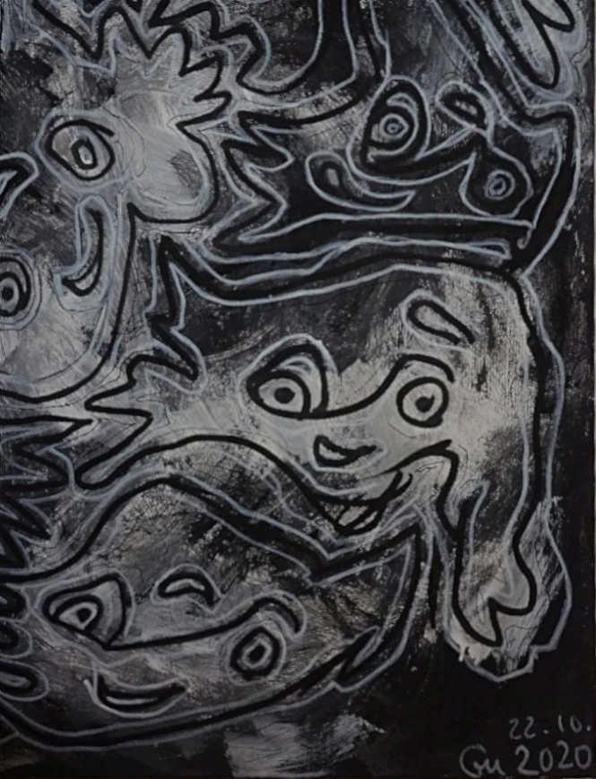 Das Jahr 2020 war ein Jahr in der Corona-Epedemie. In diesen Jahren habe ich viele Schwarz-Weiß-Bilder gemalt, obwohl ich nicht unbedingt damit ein Gefühl der Farblosigkeit oder Bedrückung festhalten wollte.