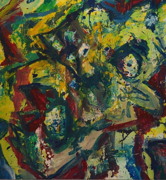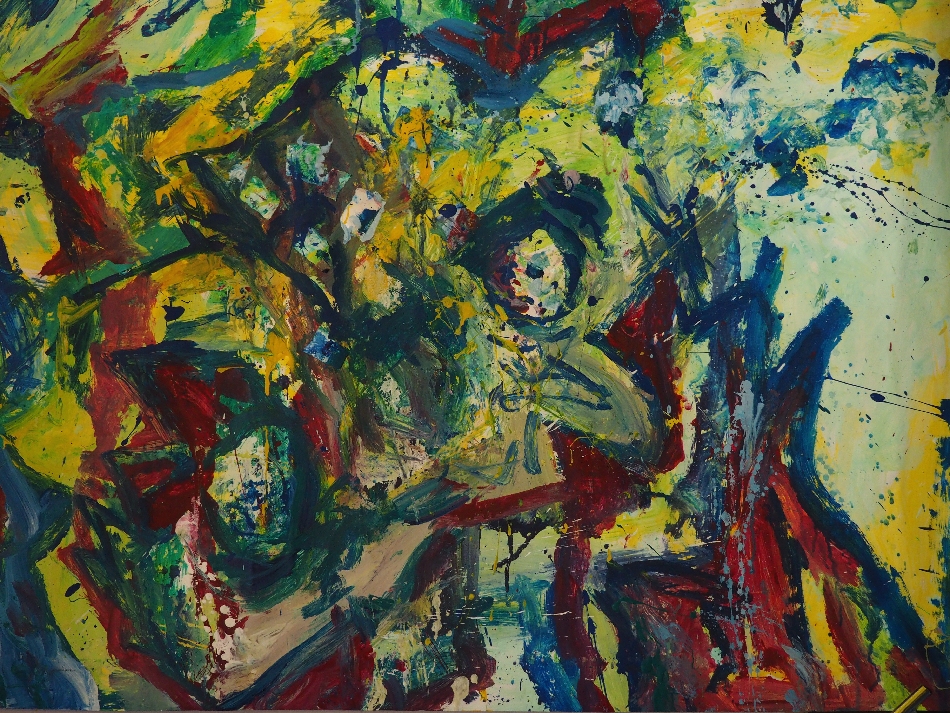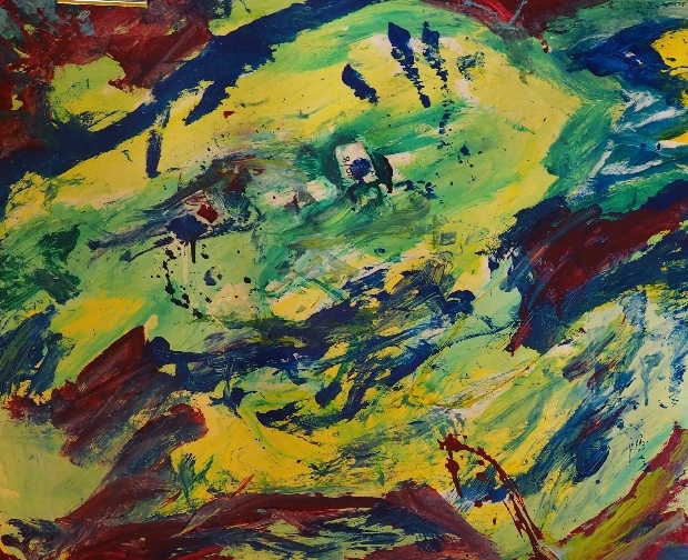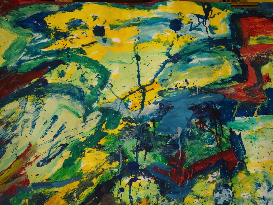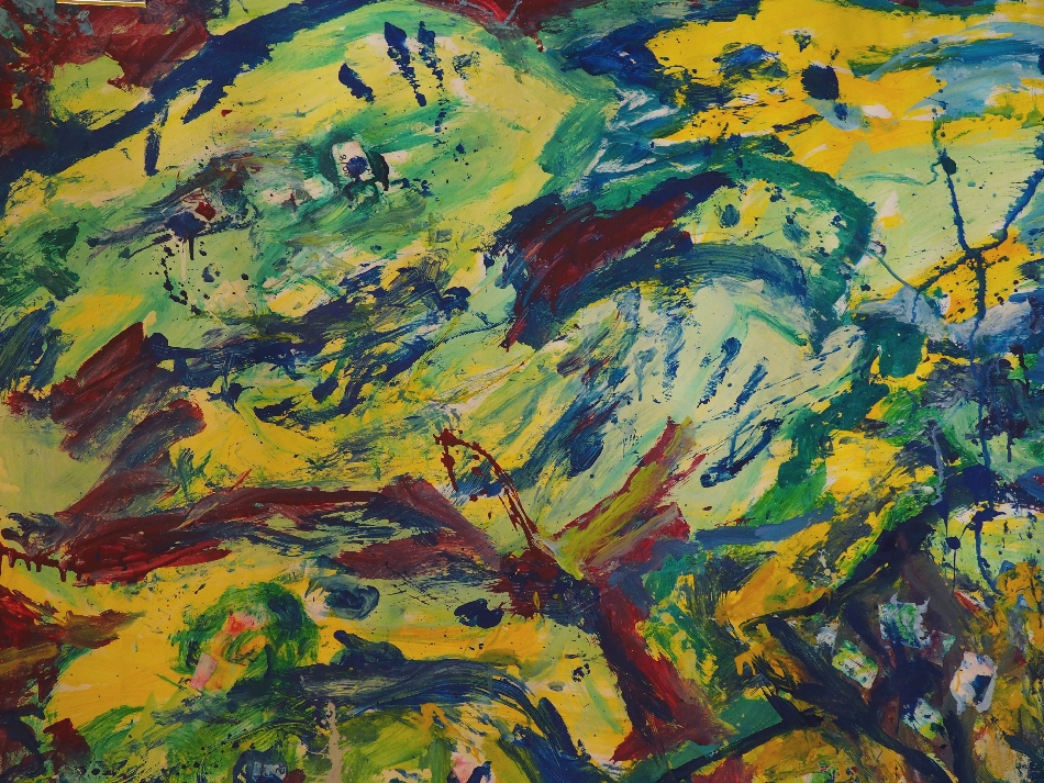 Solche Farbflecken können kontrolliert an spezifische Stellen gesetzt werden, auch wenn das Gemälde im Ganzen spontan aussieht. Die Maltechnik ist nicht einfach drauflos und spontan, sondern die Geste beeinflusst den Farbauftrag und ordnet sich der Gesamtheit ein.