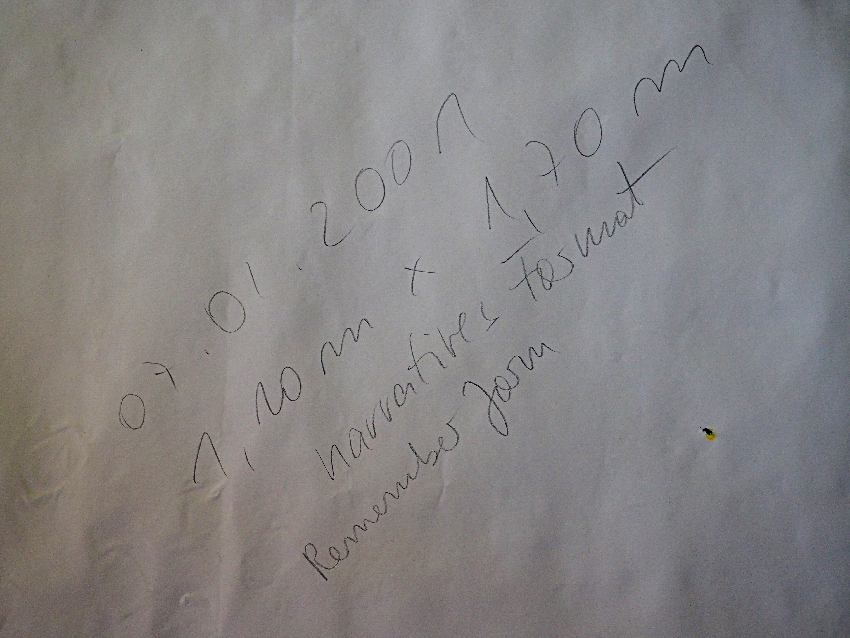 Vorbilder und Traditionen müssen verarbeitet werden, wenn jemand in einer Wissenschaft oder Kulturtechnik einen eigenen Beitrag entwickeln möchte. Das Gemälde „Remember Jorn“ ist eine bewusste Bezugnahme zur Improvisationsmethode Jorns und des Informel. Im Jahr 2001 habe ich noch großformatig auf aufgespanntem Aquarell-Karton gearbeitet. So ist dieses Gemälde an einem Arbeitstag entstanden, gemeint ist in einer zusammenhängenden Arbeitszeit – ein Morgen, ein Mittag, ein Abend – mit Betrachtungspausen und Erkennen, dass das Gemälde nun fertig ist.